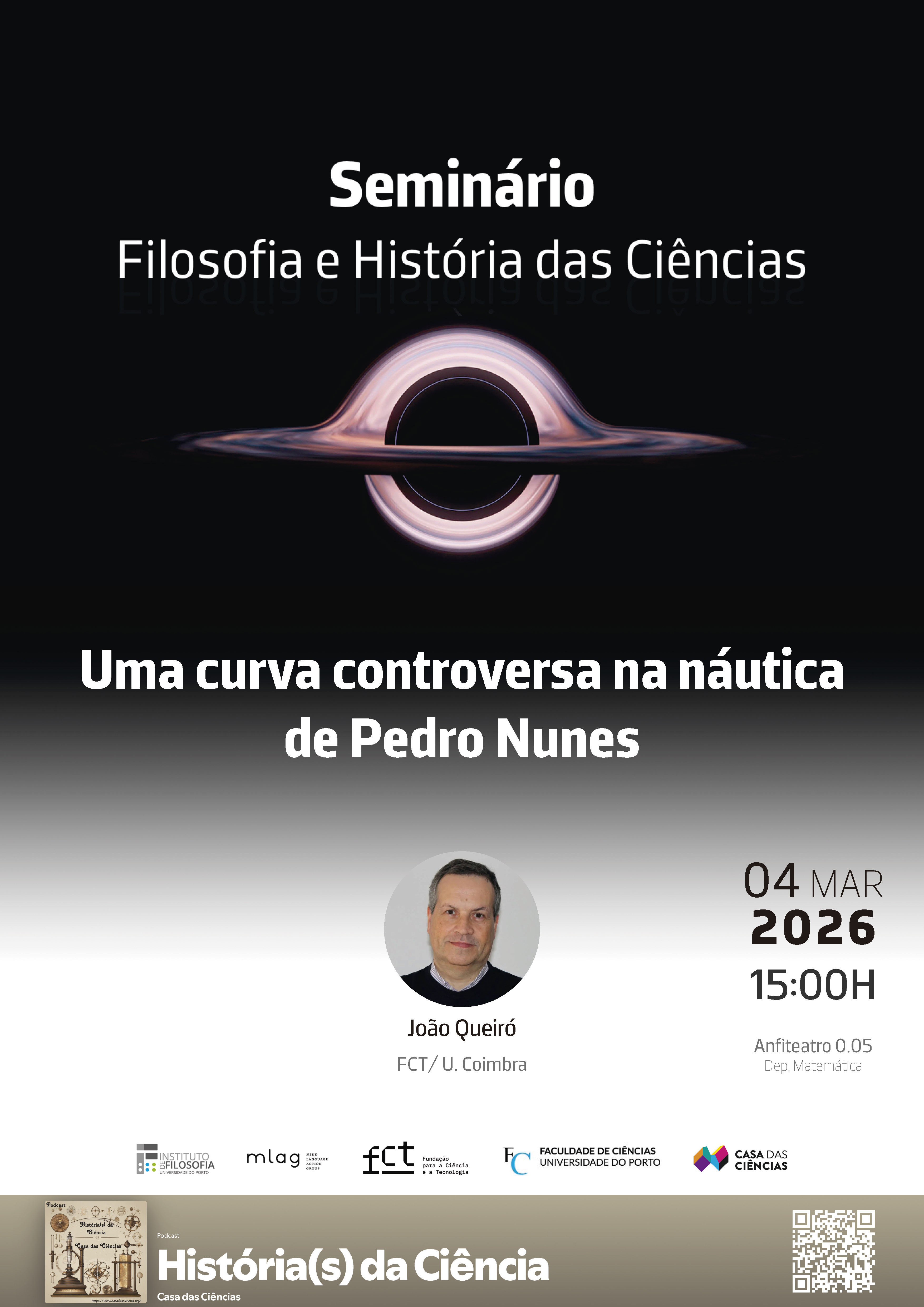 Resumo: No século XVI Pedro Nunes distingue pela primeira vez dois tipos de navegação: a que se faz ao longo de um círculo máximo – e que minimiza as distâncias percorridas – e outra, mais natural para os pilotos, que decorre mantendo constante o ângulo que o eixo do navio faz com o norte. Esta distinção, ainda hoje fundamental (tanto no mar como nas viagens aéreas), foi claramente apresentada e analisada em dois tratados publicados em português em 1537. Com este estudo e outros que se lhe seguiram, Pedro Nunes criou a ciência da navegação. O objeto interessante aqui são as linhas percorridas sobre a esfera usando o segundo tipo de navegação. Pedro Nunes é o primeiro a estudar estas “linhas de rumo” e a ter uma ideia sobre a sua natureza. O seu trabalho, elaborado e refinado ao longo de décadas, culmina numa extraordinária análise matemática publicada num livro editado em Basileia, em latim, em 1566: as "Petri Nonii Salaciensis Opera". O tema desta palestra é o trabalho matemático de Pedro Nunes sobre as linhas de rumo, de grande sofisticação mas com alguns aspetos controversos.