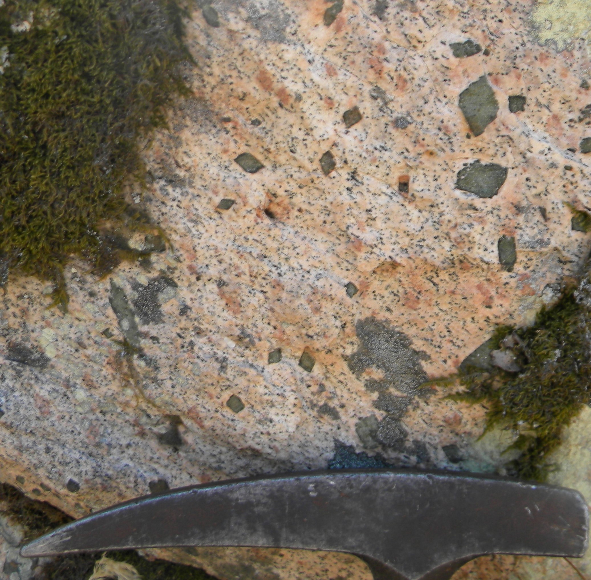 Sienito mesocrata com fenocristais euédricos centimétricos de piroxena (aegirina) numa matriz fina de feldspato alcalino (tonalidade branco-rosado) e anfíbola (riebeckite) acicular escura. O interesse nas rochas sieníticas exóticas de Alter Pedroso é histórico: "Nada de semelhante ocorre nestas rochas, que constituem o primeiro exemplar de sienito mesocrata com aegirina e riebeckite, razão pela qual é necessário designá-las com um nome especial e proponho LUSITANITO para recordar o seu país de origem. Este tipo também preenche uma lacuna na classificação químico-mineralógica..." - Lacroix (1916), petrólogo e mineralogista clássico.