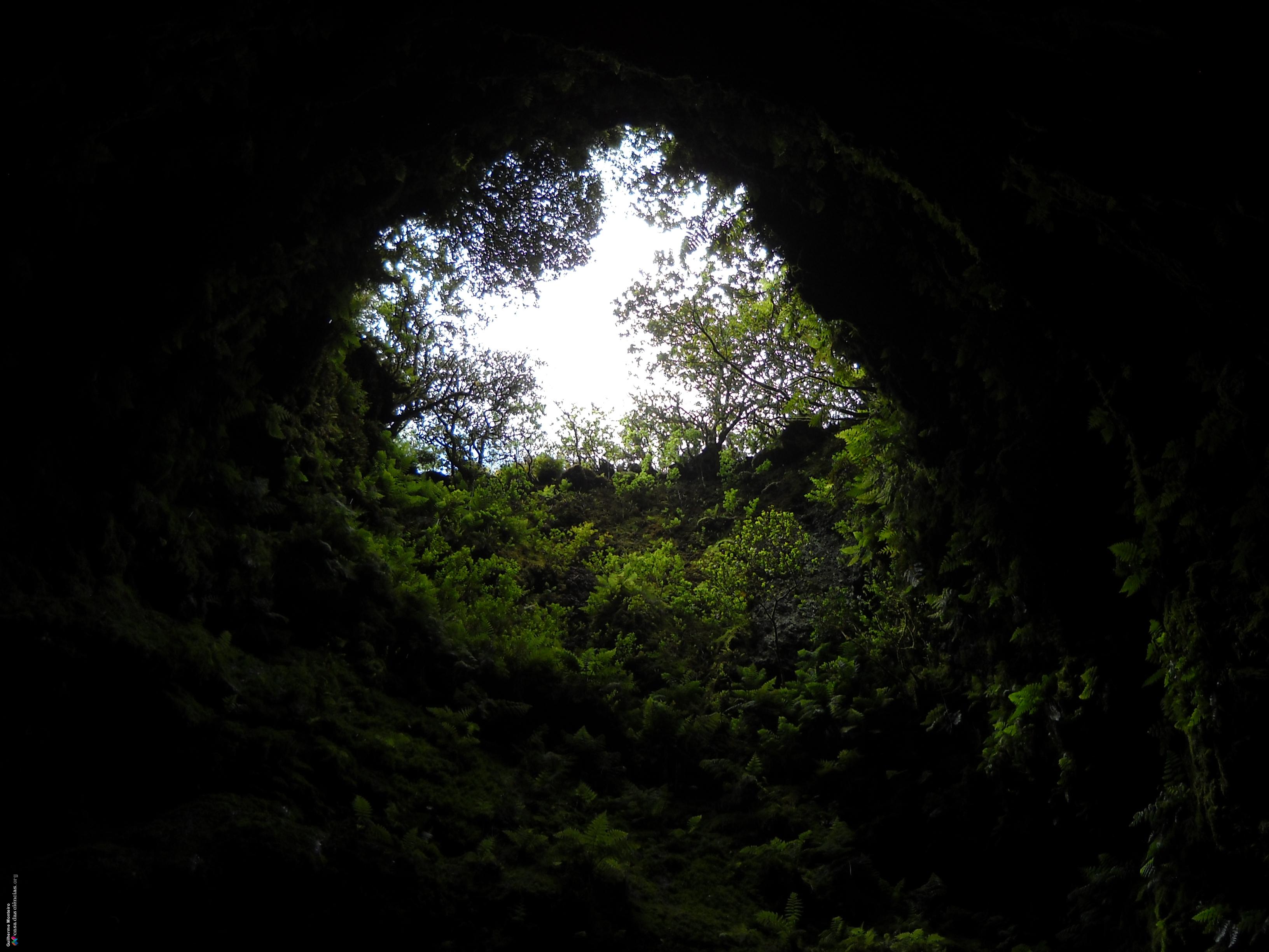 Interior de uma antiga chaminé vulcânica, ilha Terceira, Açores.