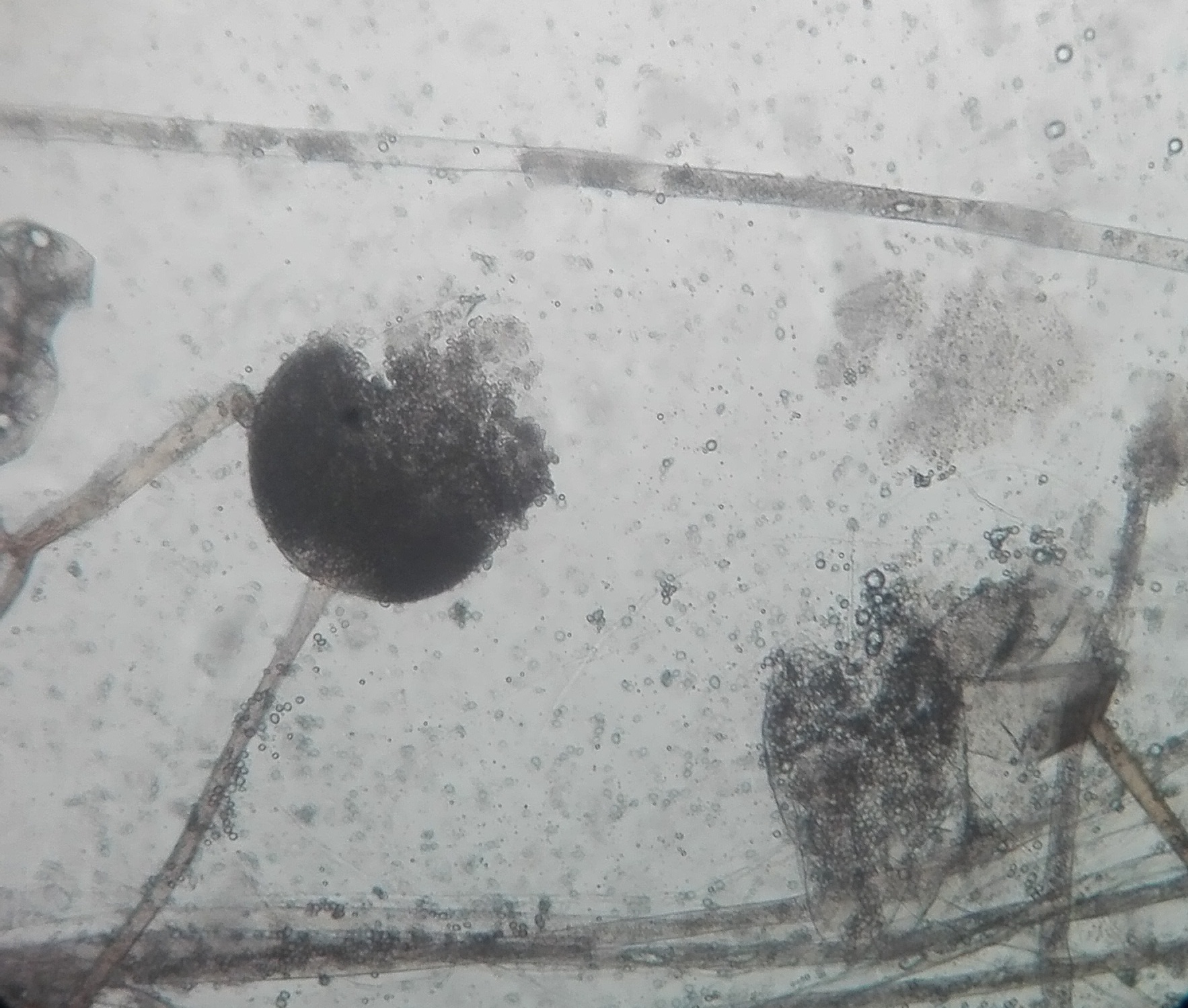 Libertação de esporos - mitósporos - de esporângio do bolor do pão. No processo de propagação vegetativa, também conhecida por reprodução assexuada, fungos como Rhizopus formam esporos por mitose em esporângios. Assim, estes esporos denominam-se mitósporos, para distinguir dos que se formam por meiose no processo de reprodução sexuada após cariogamia em zigosporângios heterocarióticos.