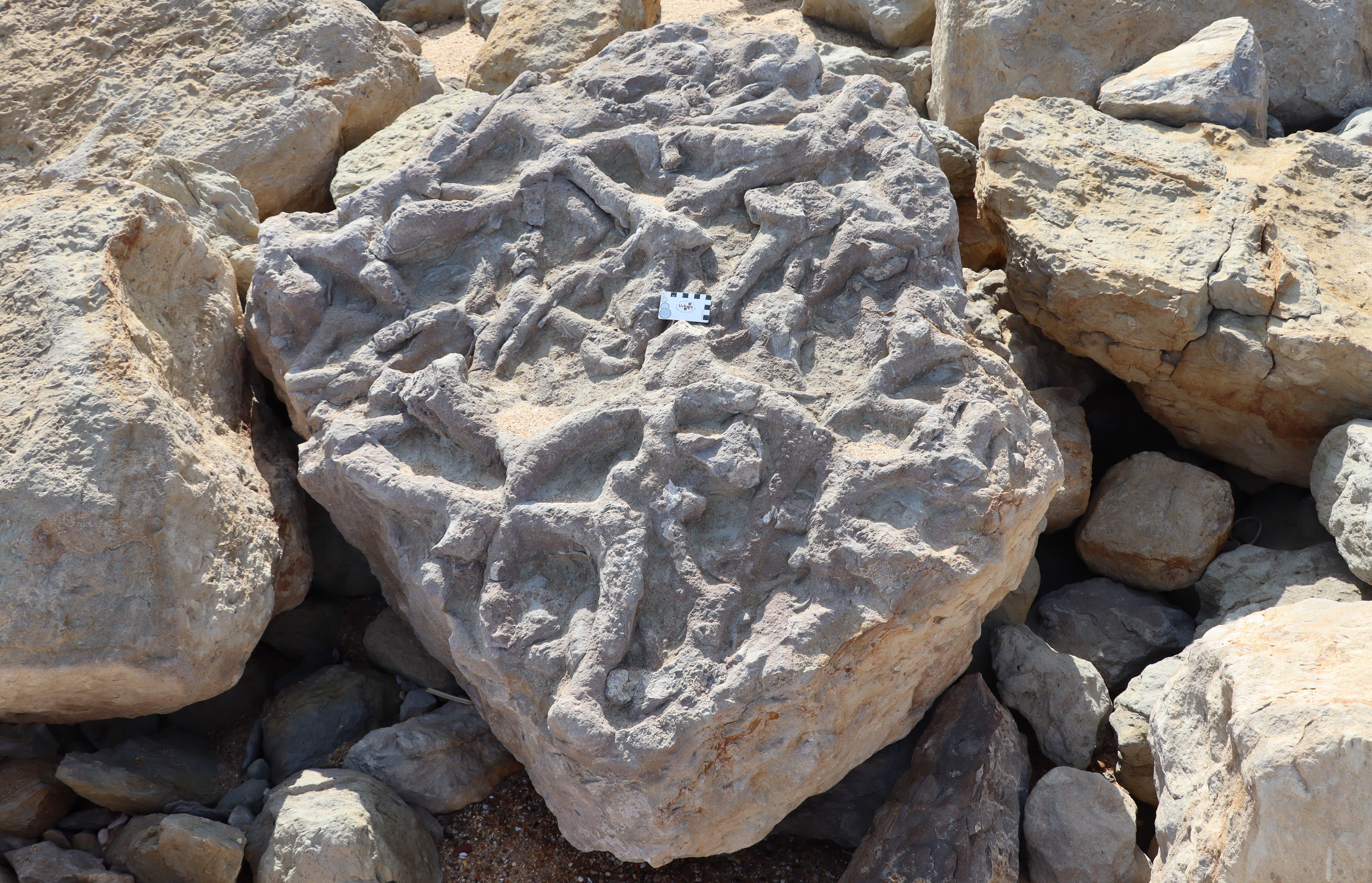 Pedaço de estrato exibindo o icnogénero “Thalassinoides”
