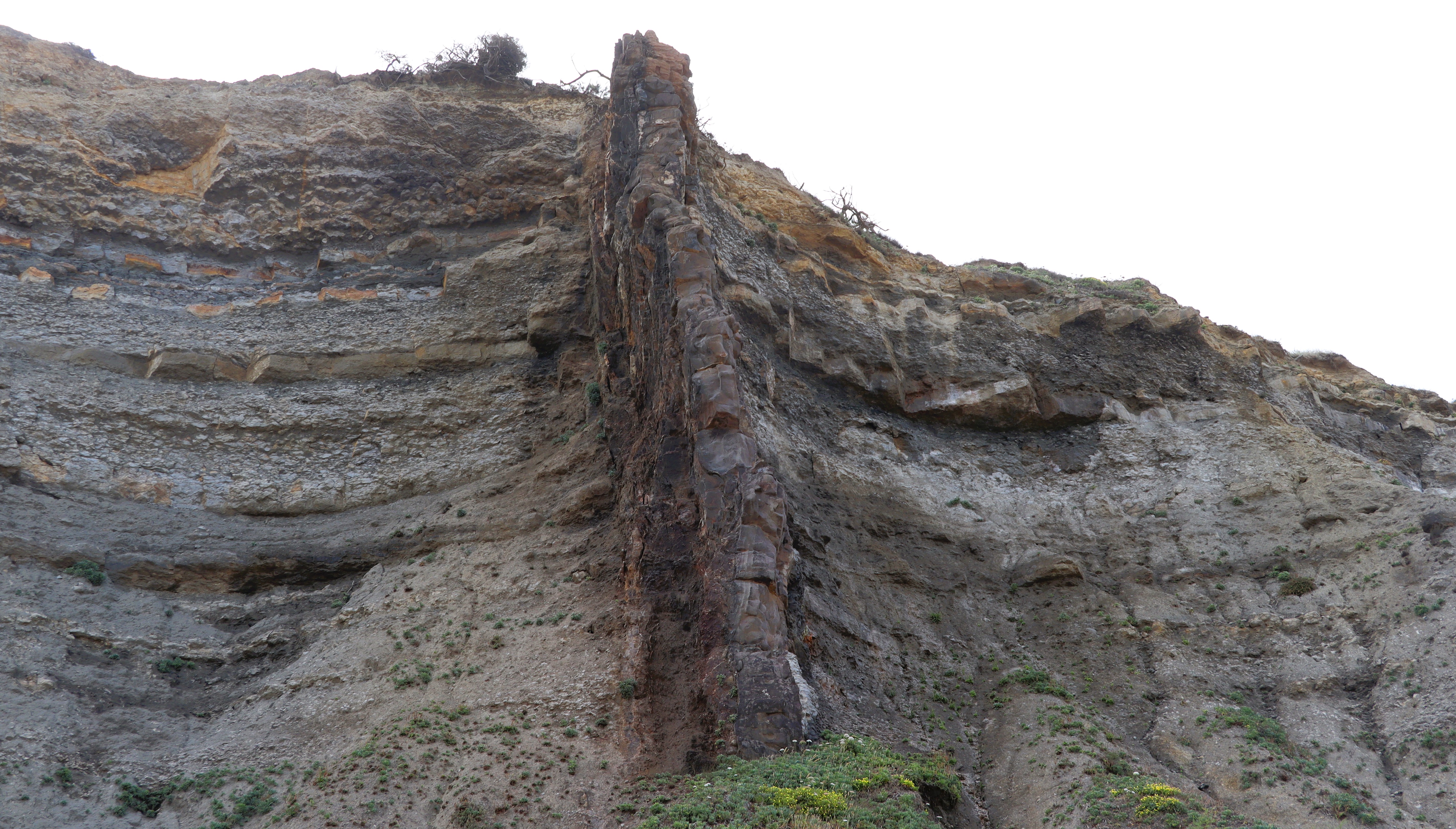 Parte superior de filão que aflora em arriba da Praia do Magoito