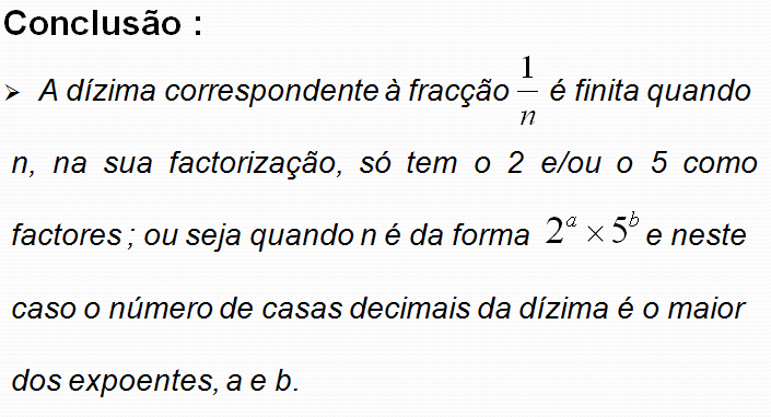 As dízimas nas fracções