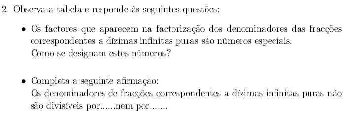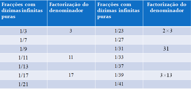 As dízimas nas fracções