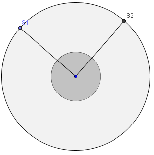 o ponto equidistante de S1 e S2, ou seja o ponto médio do