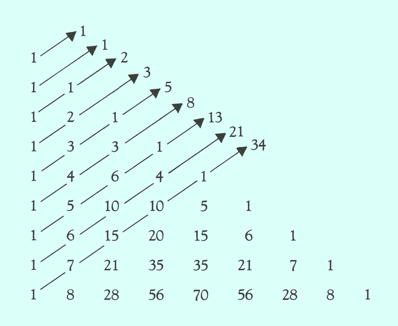 triângulo de Pascal e os números de Fibonacci: