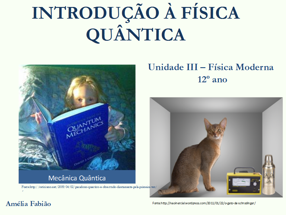 Apresentação PPT sobre os conteúdos "Introdução à Física Quântica" da unidade III - Física Moderna (12º ano). A apresentação tem várias hiperligações para animações, simulações, vídeos e páginas da Internet. Foi concebida para ser utilizada na sala de aula e, posteriormente, ser disponibilizada aos alunos.