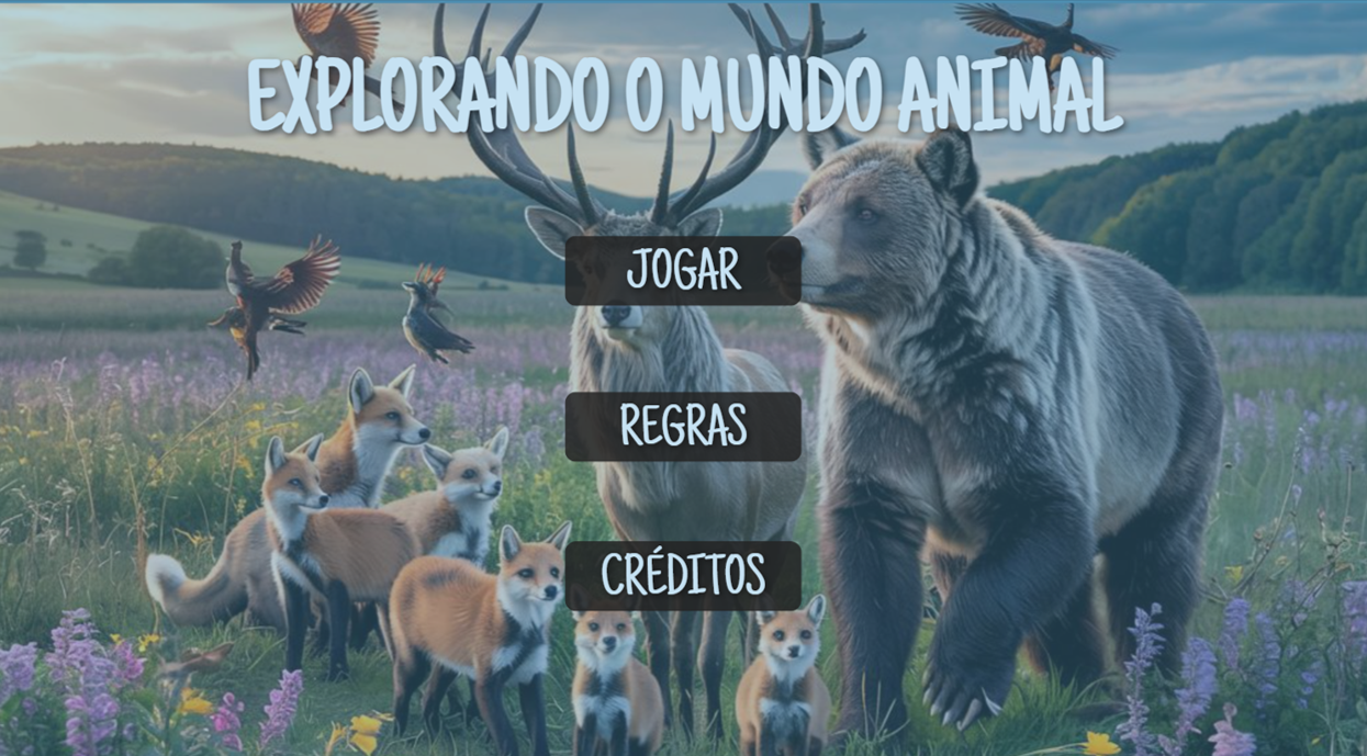 "Explorando o Mundo Animal" é um jogo desenvolvido para estudantes do 5.º ano, em conformidade com as Aprendizagens Essenciais da disciplina de Ciências Naturais. O jogo visa apoiar os alunos na compreensão da diversidade dos seres vivos e no reconhecimento de características dos animais, tais como a forma corporal, o tipo de revestimento, a reprodução, os órgãos de locomoção e a alimentação. Recomenda-se a sua utilização como atividade de revisão dos conteúdos abordados.